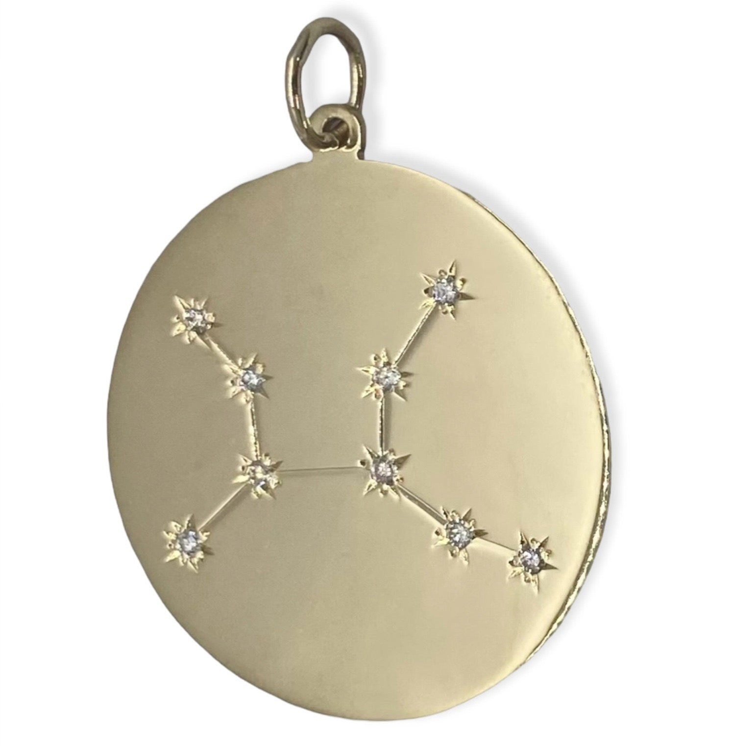 Constellation pendant, round with inset diamonds in the constellation pattern of your choice. Select your Zodiac birth sign or that of a loved one.