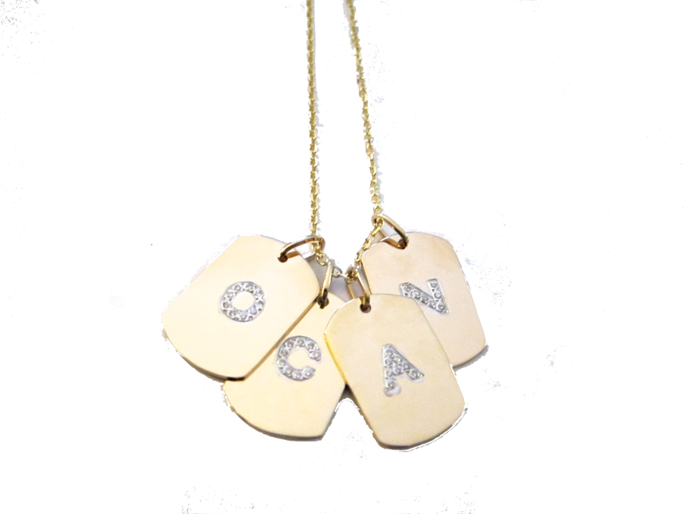 14k Yellow Gold Dog Tag with Pave Diamond Letters (Customizable)