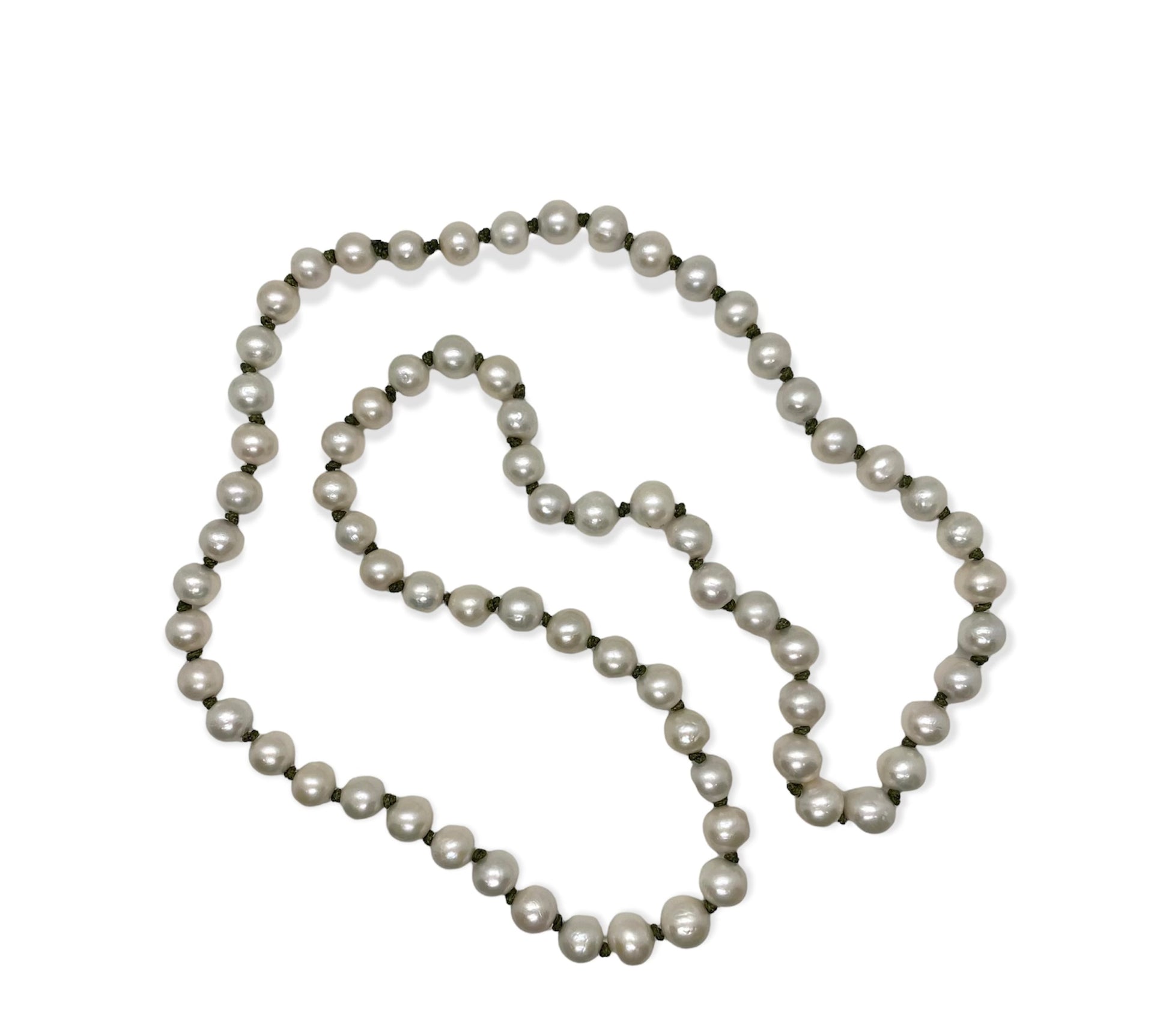 Large Freshwater Pearls with Olive Green Knots, 36 Inches